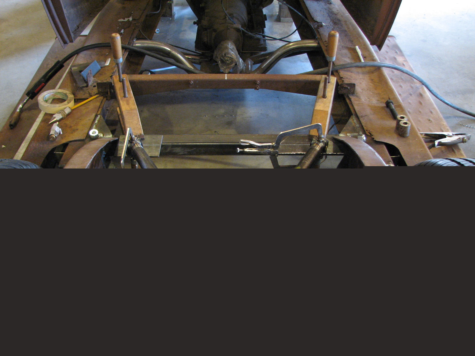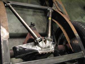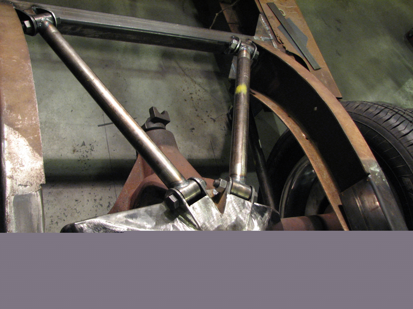 The lower axle mounts are made from 6 separate steel weldments which hold the axle with the 4 link bars; Lower mount for the air bags; Lower mount for the shocks; and mount the rack and pinion directly to the axle on the back.