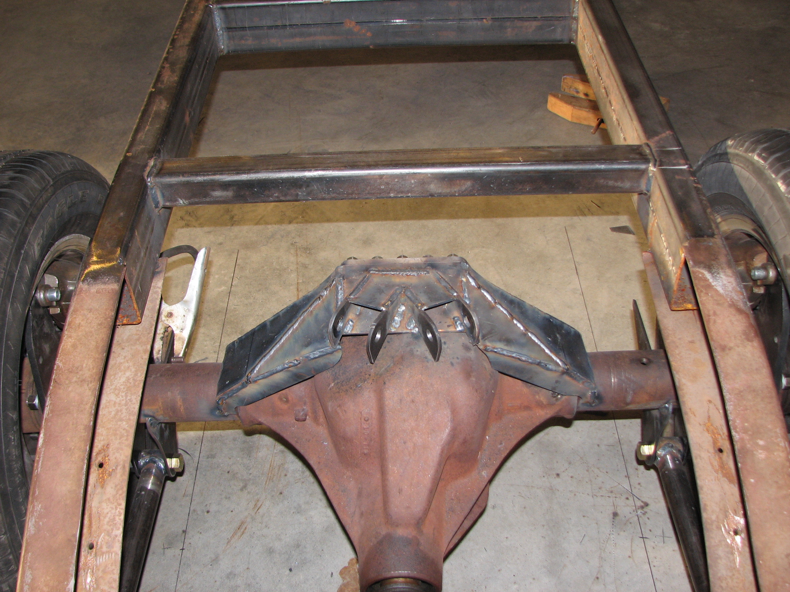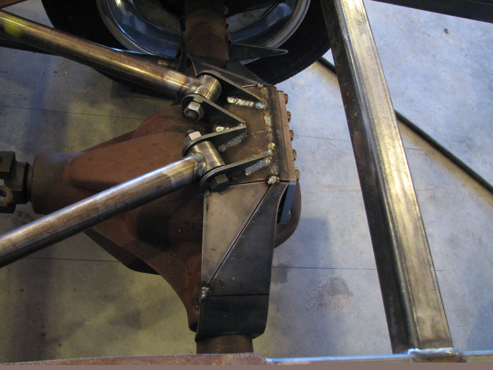 Ready to put the 4 link on the rear axle, I wasn't sure which way would be the best; parallel 4 link bars or triangulated bars, in the end it was the triangulated bars that won out because they had the right amount of clearance in the right places, and it was nice not having to make some kind of panhard bar or watts link to control the side to side movement of the axle. The only problem with the triangulated bars was that I was running a Dana 60 and you can't weld on the center part of the housing, so I had to make a bridge to mount the top bars to.