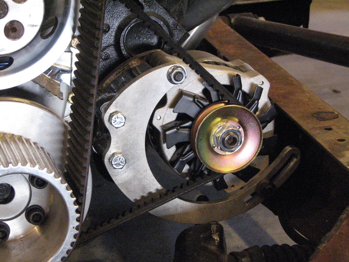 After running the air suspension up and down a few times I was trying to fit my alternator to the engine and got concerned a little bit because the alternator wouldn't quite fit with the suspension all the way down so I looked around for a smaller one and Nippondenso made a very small one, but it looked like it was only putting out about 50 amps which I didn't feel was enough, so I settled on a GM CS121 Alternator which was smaller than a standard GM, and put out 80 amps, so I figured that would work.