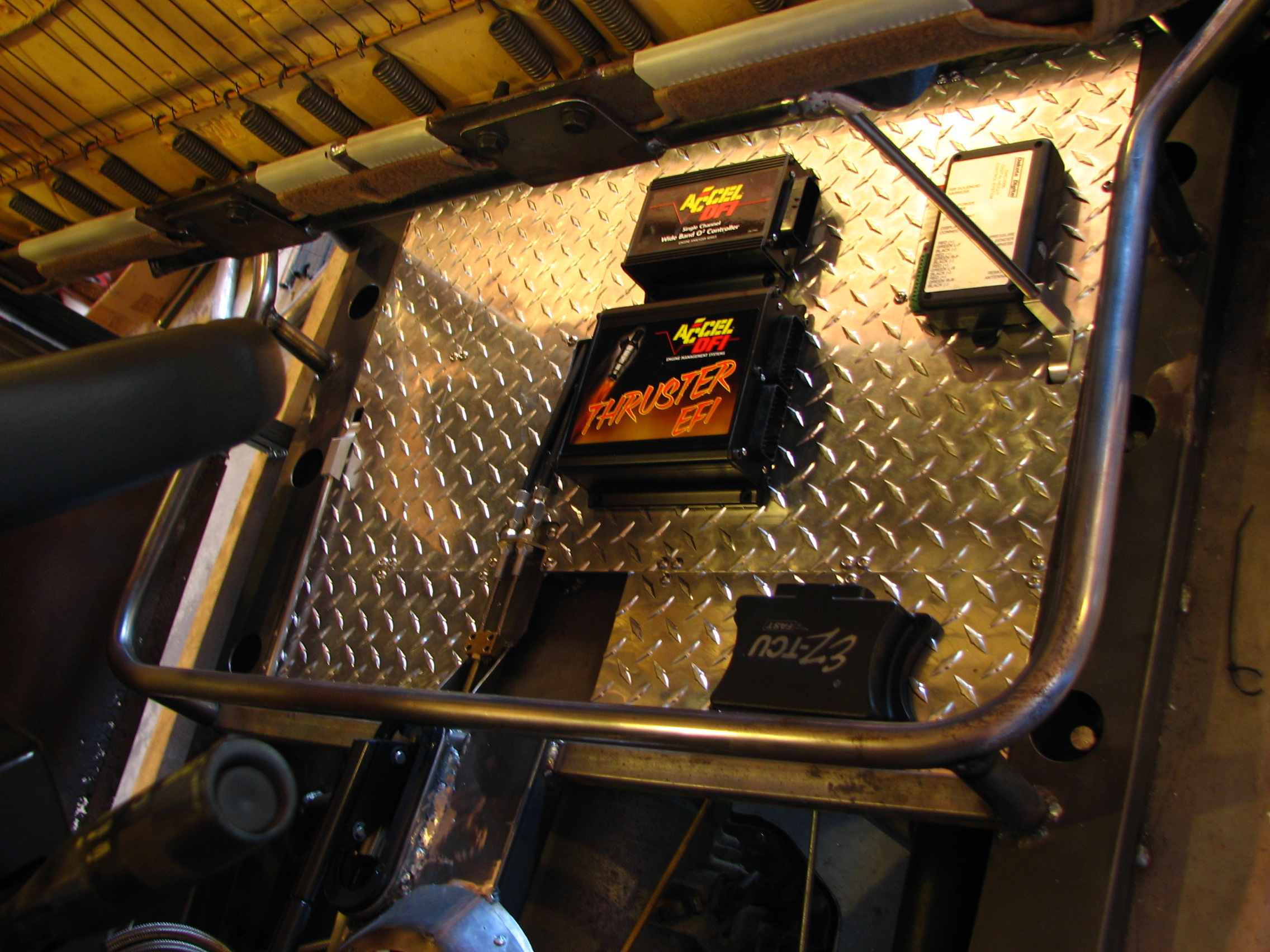 Well I got the carbed motor fired up here in October and then built a "subfloor" under my seat to help me run the wiring so I can mount my 4 computers under there and get the wiring somewhat sanitary,